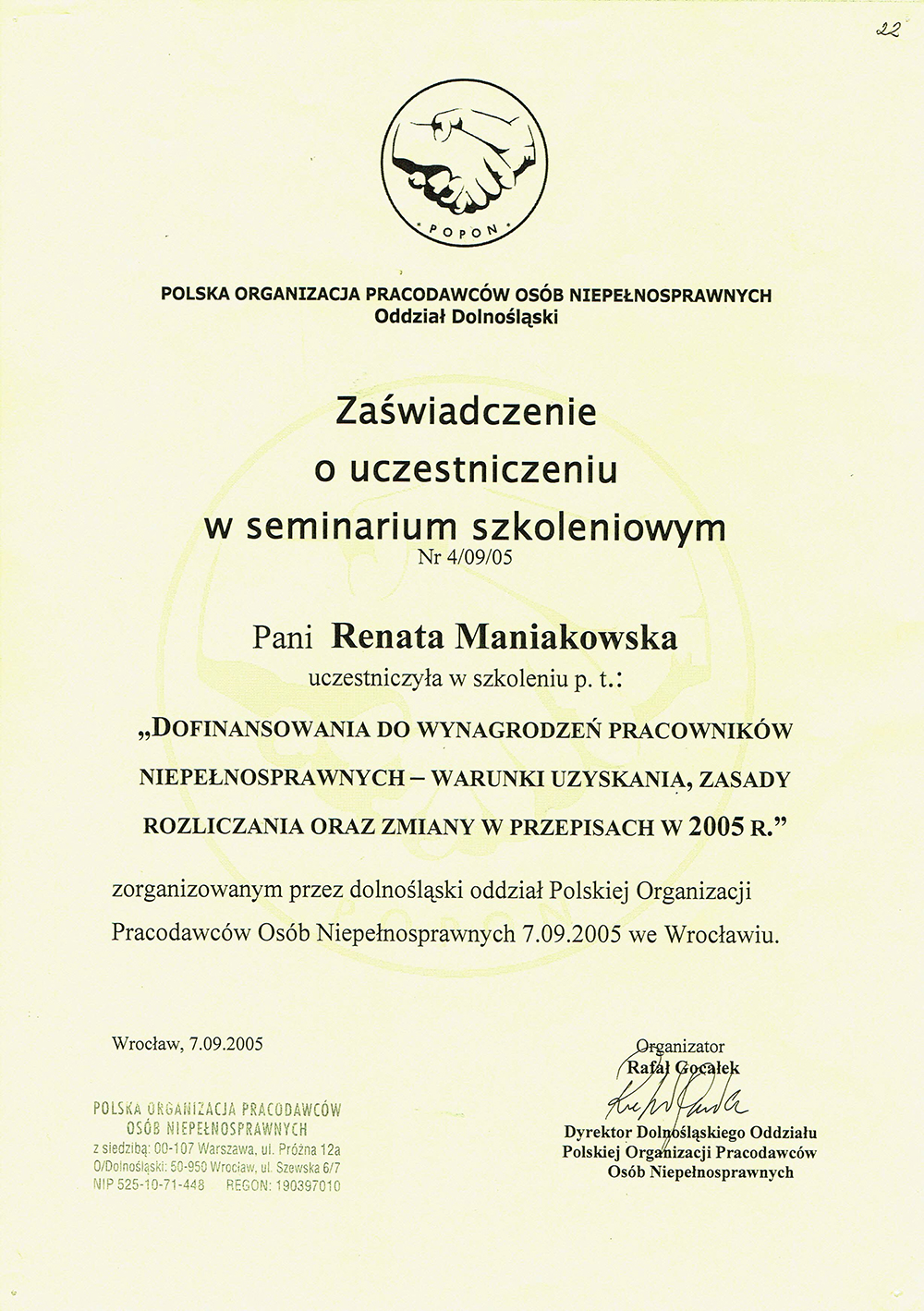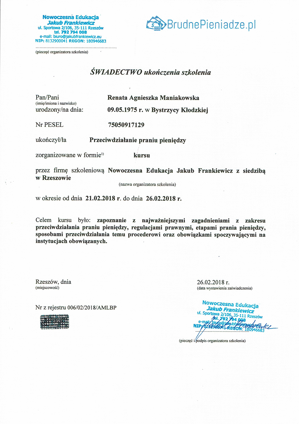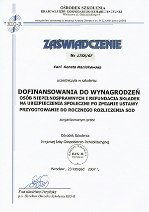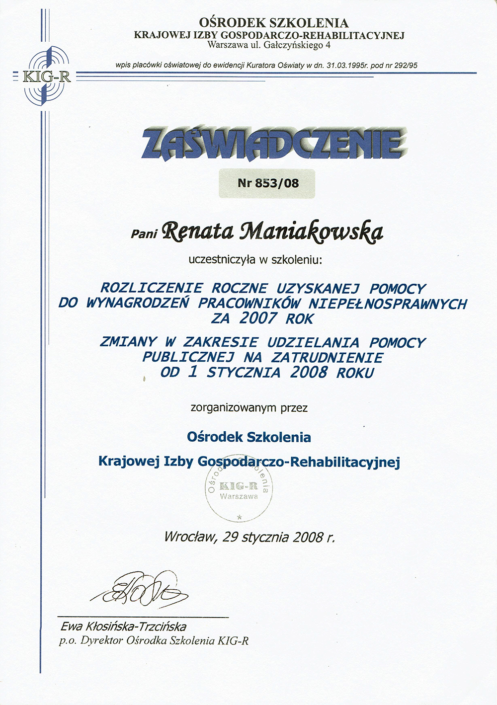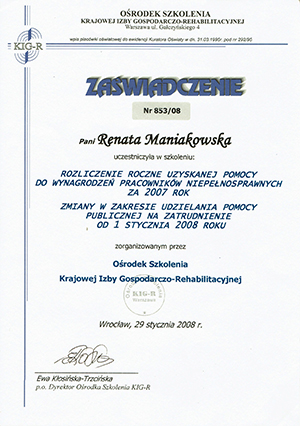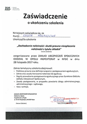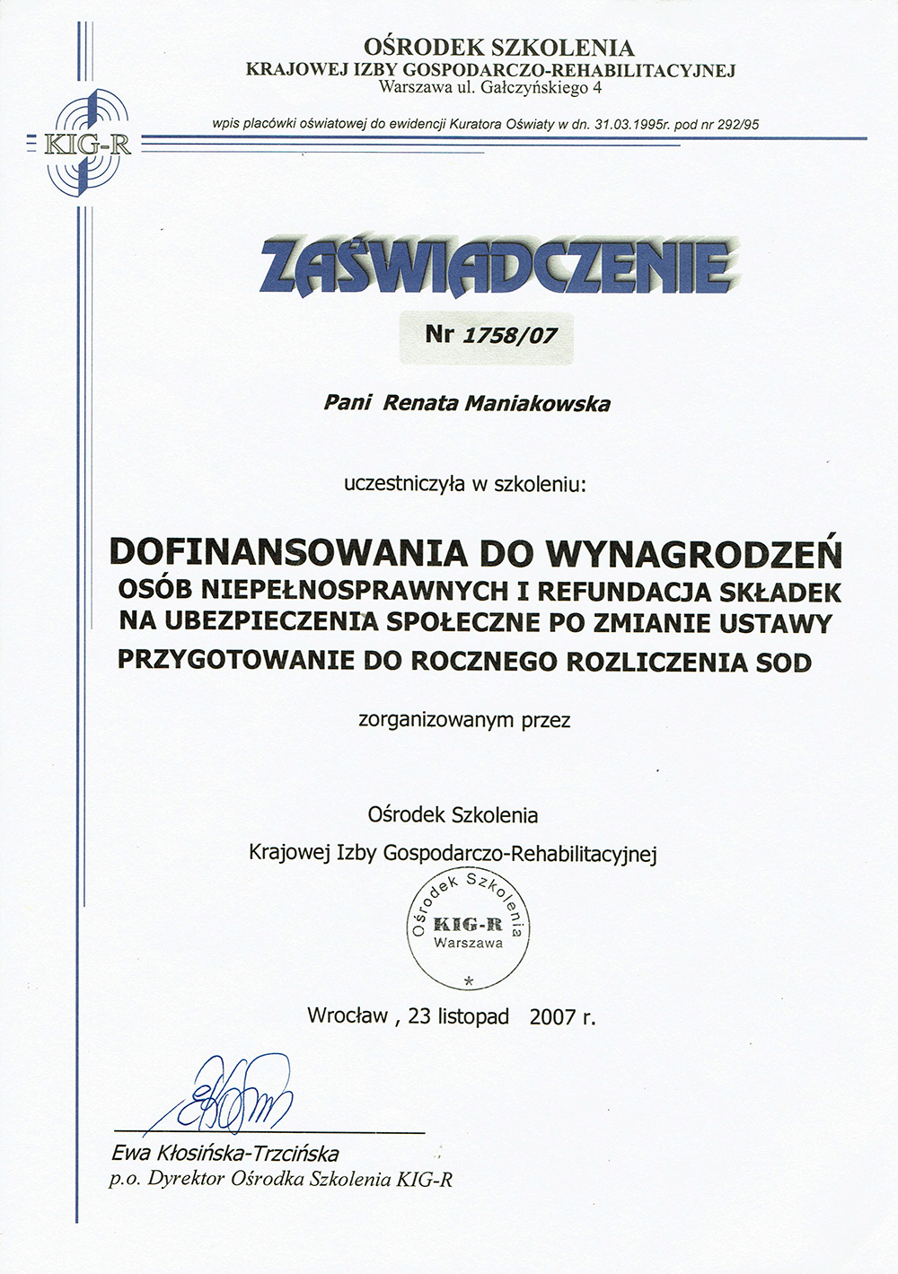 Firma Biuro Rachunkowe "ROK" Renata Maniakowska posiada wszelkie niezbędne certyfikaty i uprawnienia do prowadzenia działalności z zakresu księgowość nysa. Powyżej prezentujemy część z tych dokumentów. Przypominamy, iż bardzo ważne jest, aby sprawdzić uprawnienai i certyfikaty księgowego z którego usług mają Państwo zamiar skorzystać. Dokumenty te zwiększają wiarygodność usługodawcy z zakresu księgowość nysa. Zapraszamy do współpracy.